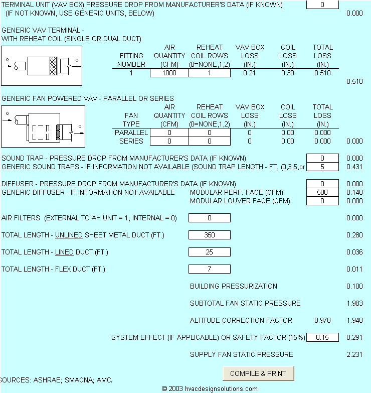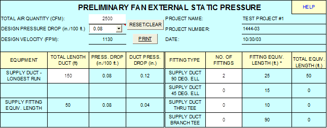 Extensive collection of HVAC Design Software for fan static pressure calculations, pump head loss calculations, duct sizing & hydronic pipe sizing, plumbing design calculations (domestic water, waste & vent, storm drains, gas pipe sizing), outdoor air ventilation calculations, design quality control & coordination, and much more.