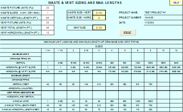 Over (18) Programs and Forms, including: Fixture Unit Calculations, Domestic Water System Sizing, Waste & Vent System Sizing, Roof Drain System Sizing, Natural Gas System Sizing, Domestic Water Heater Sizing, Help Files and “Extras”