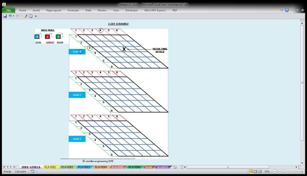3-Dee Scramble Digital “Board” game to help relieve the daily stresses (or help to create a different kind of stress….) 2 to 6 Players. Digital version of our unique “3-Dee Scramble” board game. Play it during lunch breaks or with friends and family at home. No game pieces or loose money required with the digital version. Every game is different and every game creates a “lot” of competition between the players. The player who is ahead near the end of the game could end up losing the game if his/her strategy doesn’t work out.