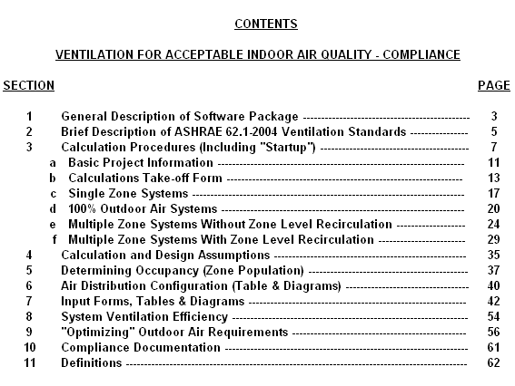 User-friendly and fast Compliance Calculations and OA “Optimization”, including: ASHRAE Standard 62.1-2013 “Ventilation Rate Procedure” Compliance Calculations, Take-off Forms, Tables, & Diagrams, Calculations for Typical Air Handling Unit Types, Design and Calculation Assumptions, Determining Occupancy (Zone Population), Air Distribution Configuration (Table & Diagrams), “Optimizing” Outdoor Air (OA) Requirements, Compliance Documentation, Extensive Help Files and “Extras” I-P (Inch-Pound) or SI units available in 2010 version and in 2013 version Now includes “VAV Scheduler”© for VAV Terminal and Reheat Coil selection and for ACAD Schedule input. Now available in 62.1-2013 Comply-VAV Version (Both I-P and SI Units)